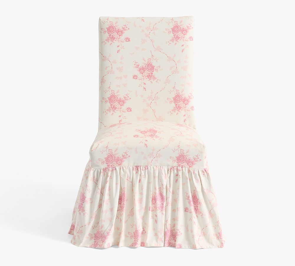 It all started from the table of course and then that started the search for what chair would go with this unique dining room table. Of course it had to be a slip covered parsons high back chair. However, it couldn't be the typical white slipcovered white high back chair. It had to be special. Finally we stumbled upon this beautiful LOVE SHACK FANCY chair which was a collaboration with POTTERY BARN, and it was this chair that made this RUMIE a LOVE SHACK FANCY dining room design.